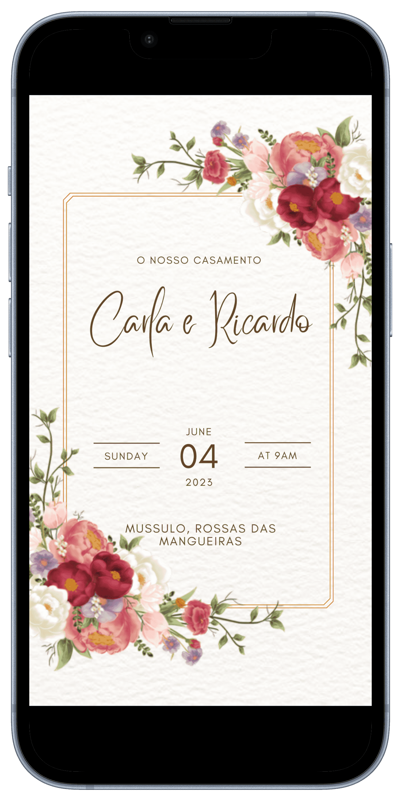O convite digital nada mais é do que uma maneira prática de informar os seus convidados sobre as principais informações do Grande Dia, como: data, horário, local, confirmação da presença e também é possível envia-lo por WhatsApp, email e redes sociais.
